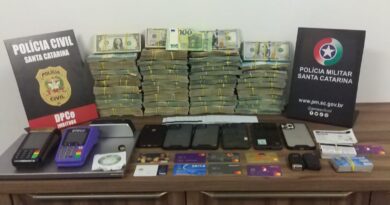 Simultaneamente, outra equipe policial cumpria ordem judicial de busca e apreensão em um imóvel no Jardim Progresso, em Tijucas, localizando mais droga, anotações e dinheiro, sendo preso o segundo criminoso.
