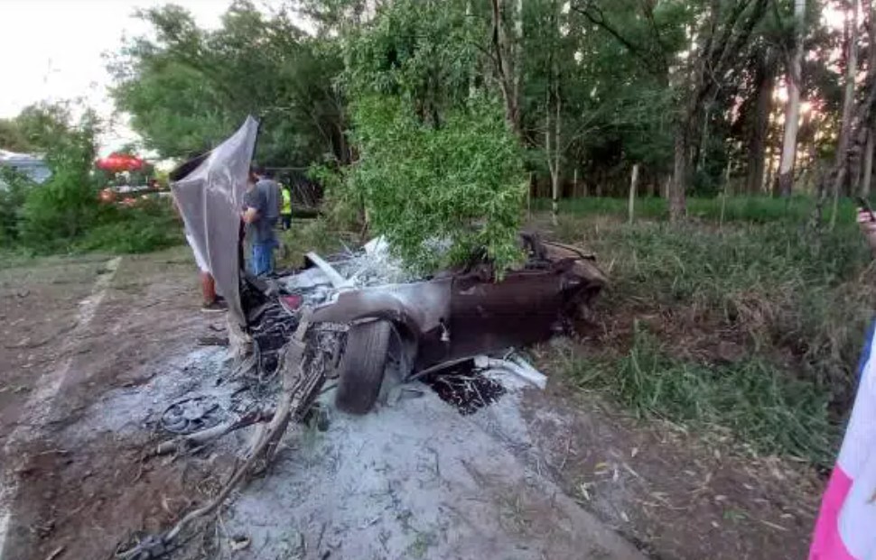 O automóvel esportivo de luxo Nissan/370Z com placas de Balneário Camboriú, Santa Catarina, era conduzido no sentido Boa Vista do Buricá/Três de Maio, quando saiu da pista e bateu contra uma árvore na lateral da rodovia.